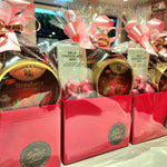 Description: Belgian Truffles Extra Dark 150g, Milk Chocolate 45%Bennetts Bar 60g, Snickers 44g, Cavendish and Harvey Strawberry Drops 175g, x5 Mini Milk Chocolate hearts, Raspberry Marshmallow Milk Chocolqte heart 45g, Raspberry Creams in creamy Milk Chocolate 130g in Pink Posy Box with Pink Bow