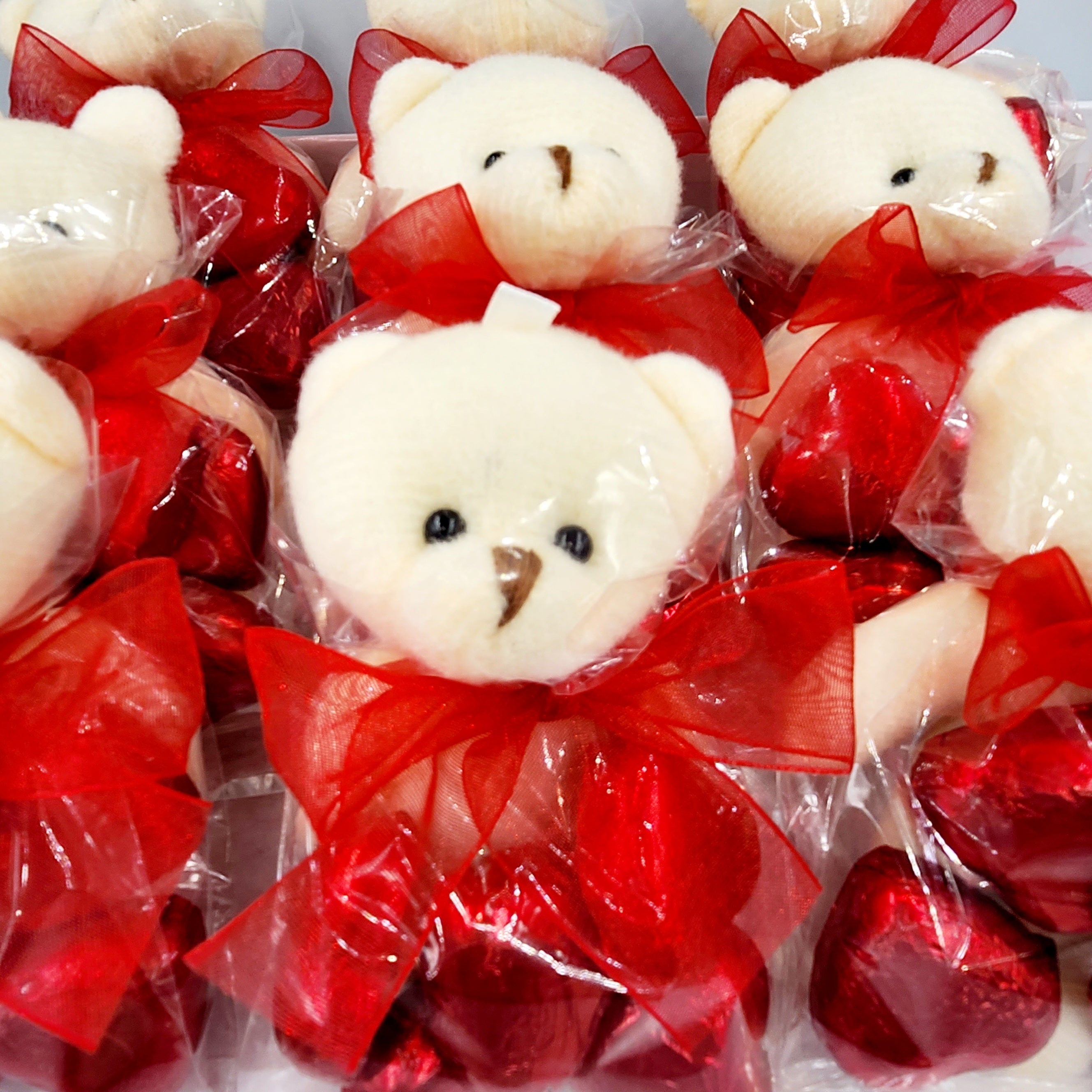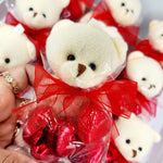 Description: Mini Plush Teddy Bear Toy 12cm with x5 Red Milk Chocolate mini hearts